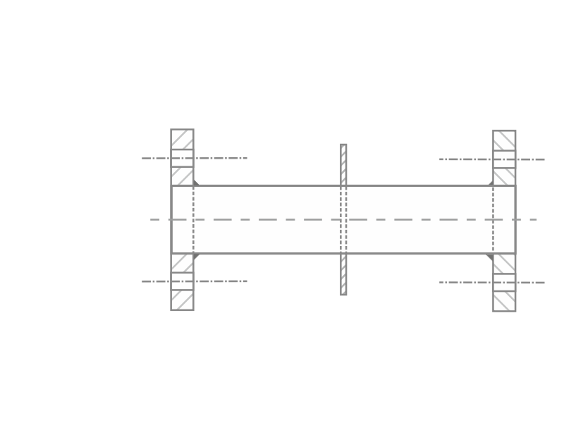 Edelstahl-Mauerrohr mit einer Länge von 300 mm, bestehend aus längsnaht geschweißtem Rohr, mit zwei reduzierten Glattflanschen und einem Mauerkragen, komplett aus Edelstahl (Wst. 1.4571), unter Schutzgas geschweißt, im Tauchbad gebeizt und passiviert.